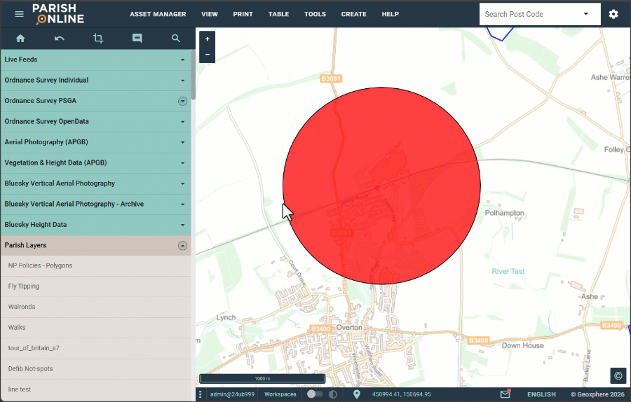- Click the Circle tool and click on the map where you want the centre of the circle to be