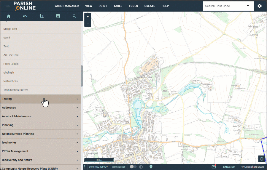 - Find the layer in your Parish Layers and click it to turn it on. It'll be blank so you won't see anything change on the map.