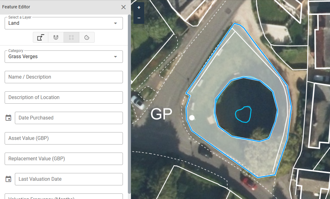 There are occasions where you want to draw out an area but there are sections within it that you don't want to include. In this example, it's a piece of land that has a duck pond within it. For grass cutting contracts we don't want to include the pond itself in the area calculation. So, we can cut a shape out of it, just like a cookie cutter