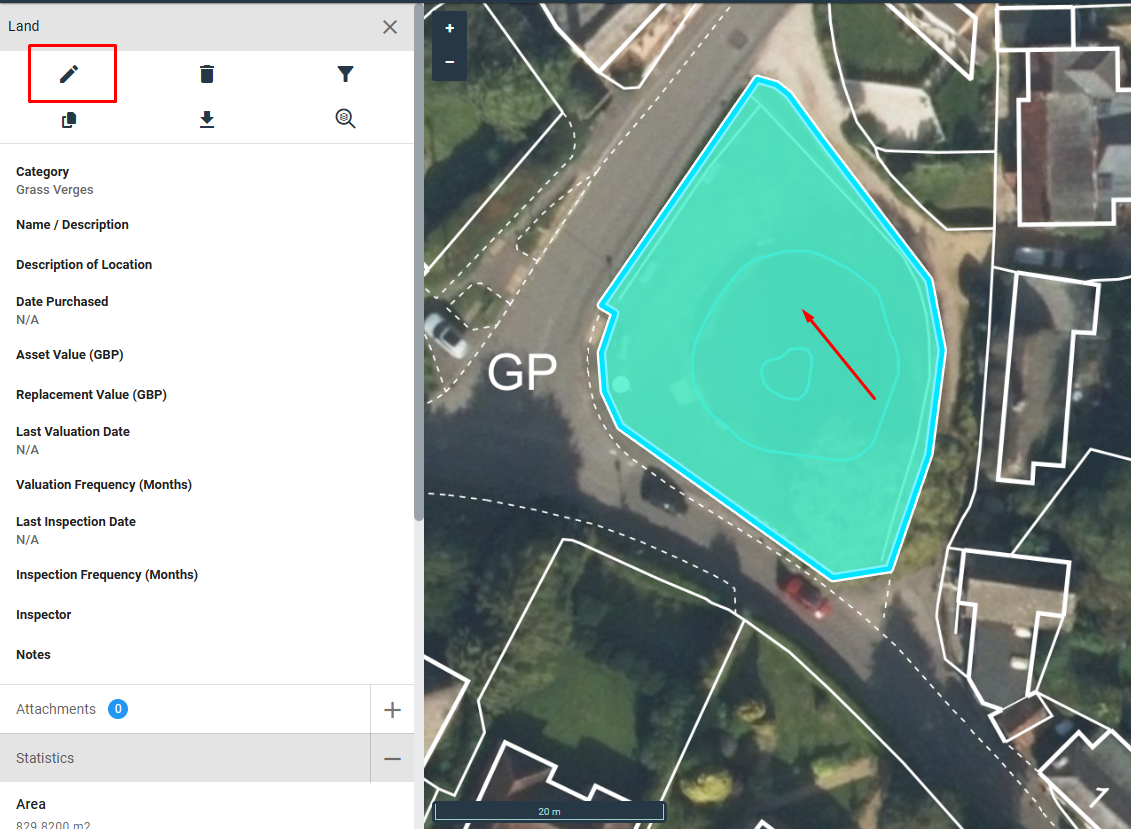 - Select the feature on the map (it will pulse in blue)