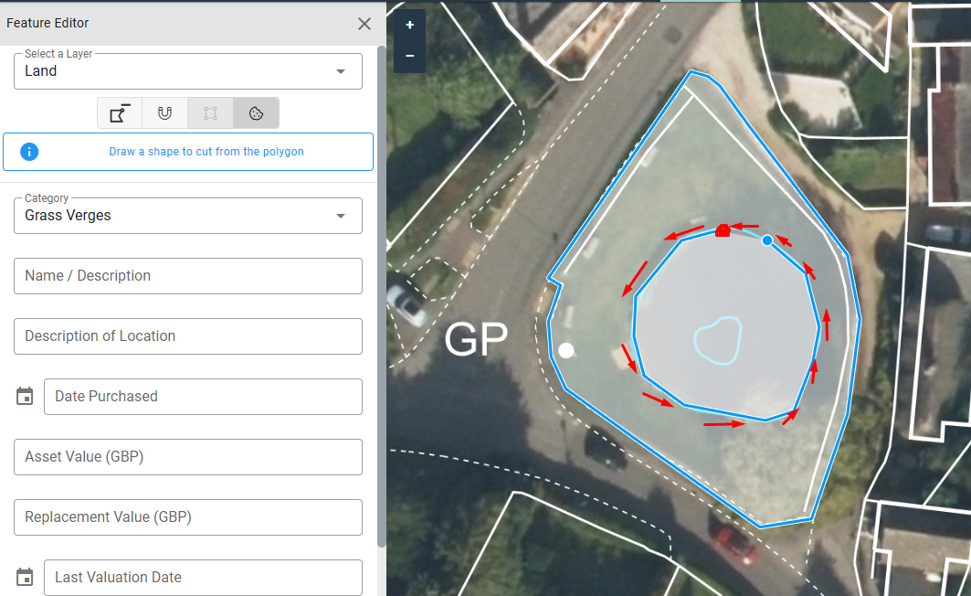 - Draw out the area you want removed from the feature