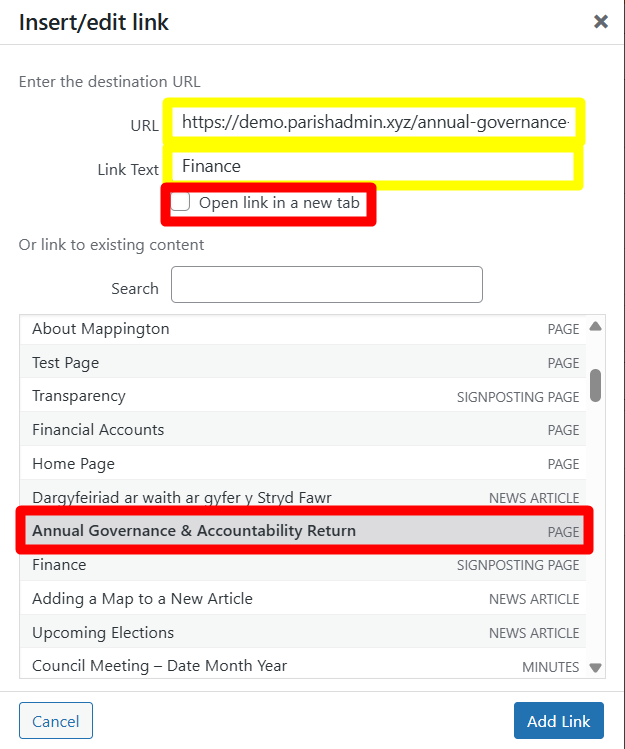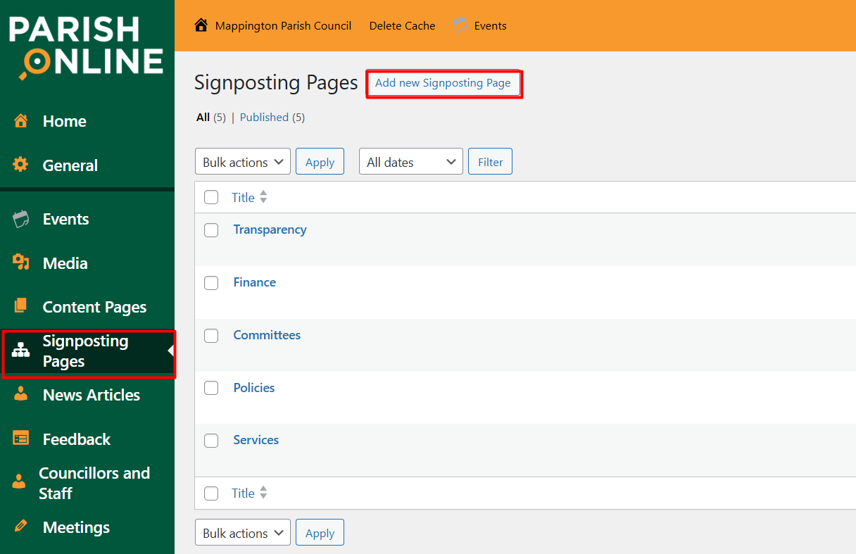 Adding and rearranging Page Links to Signposting Pages or Menus