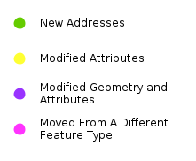 - Modified Geometry and Attributes. This is the same as above, but as well as attribution, the position of the point has changed. This is usually when a more accurate position of a new property is surveyed and the Local Authority update the position so it's more accurate.