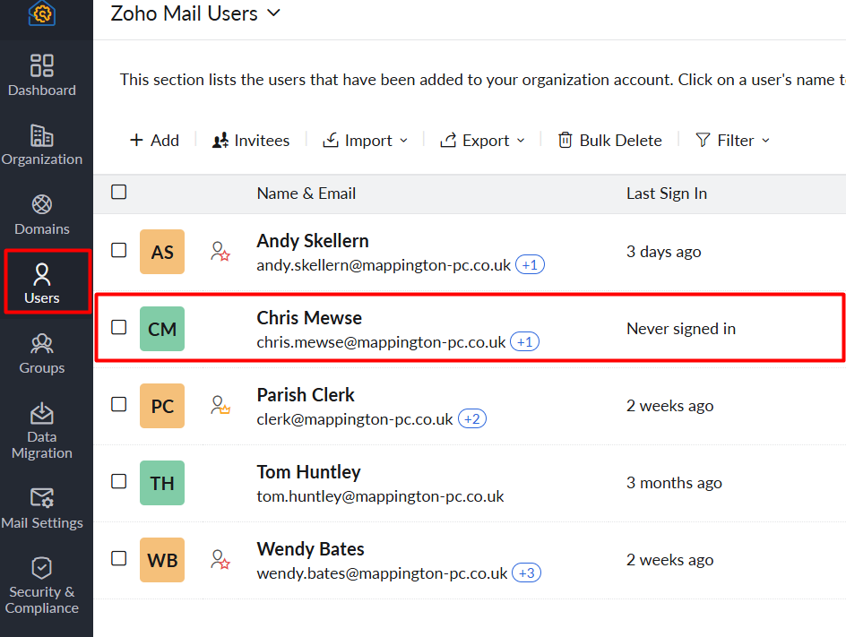 - Go to users and select the user whose Two Factor Authentication you need to reset: