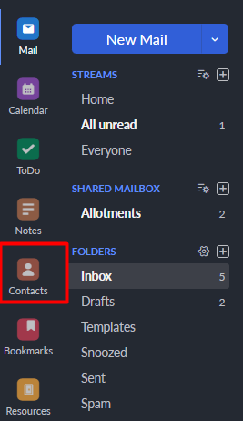 To get into your contacts, simply go to Contacts from your mailbox.