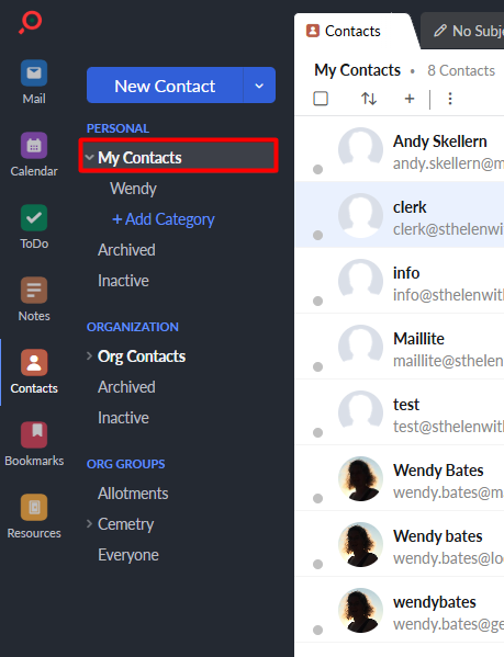 - Under Org Groups, you can see any distribution groups or shared mailboxes you have set up; you can add contacts to the distribution lists, not the shared mailboxes as these are added as members in the group.