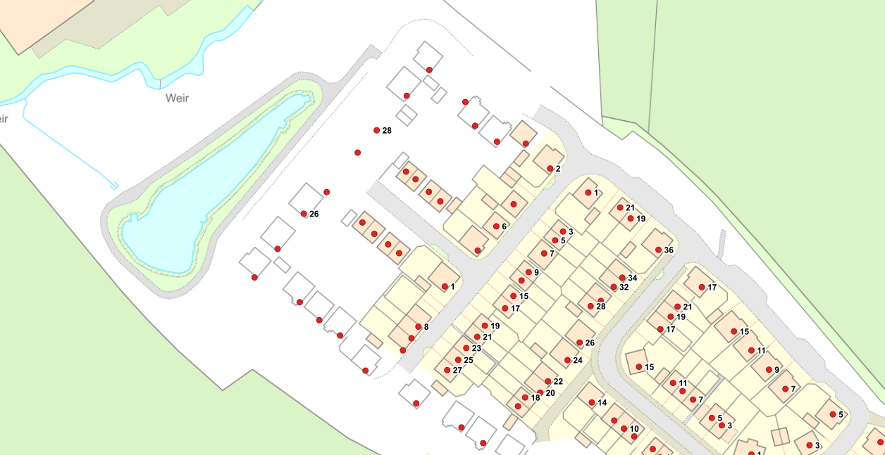 As the properties are built and aerial photography and Ordnance Survey mapping becomes available for them, the Local Authority will adjust their position to sit within the building outline.